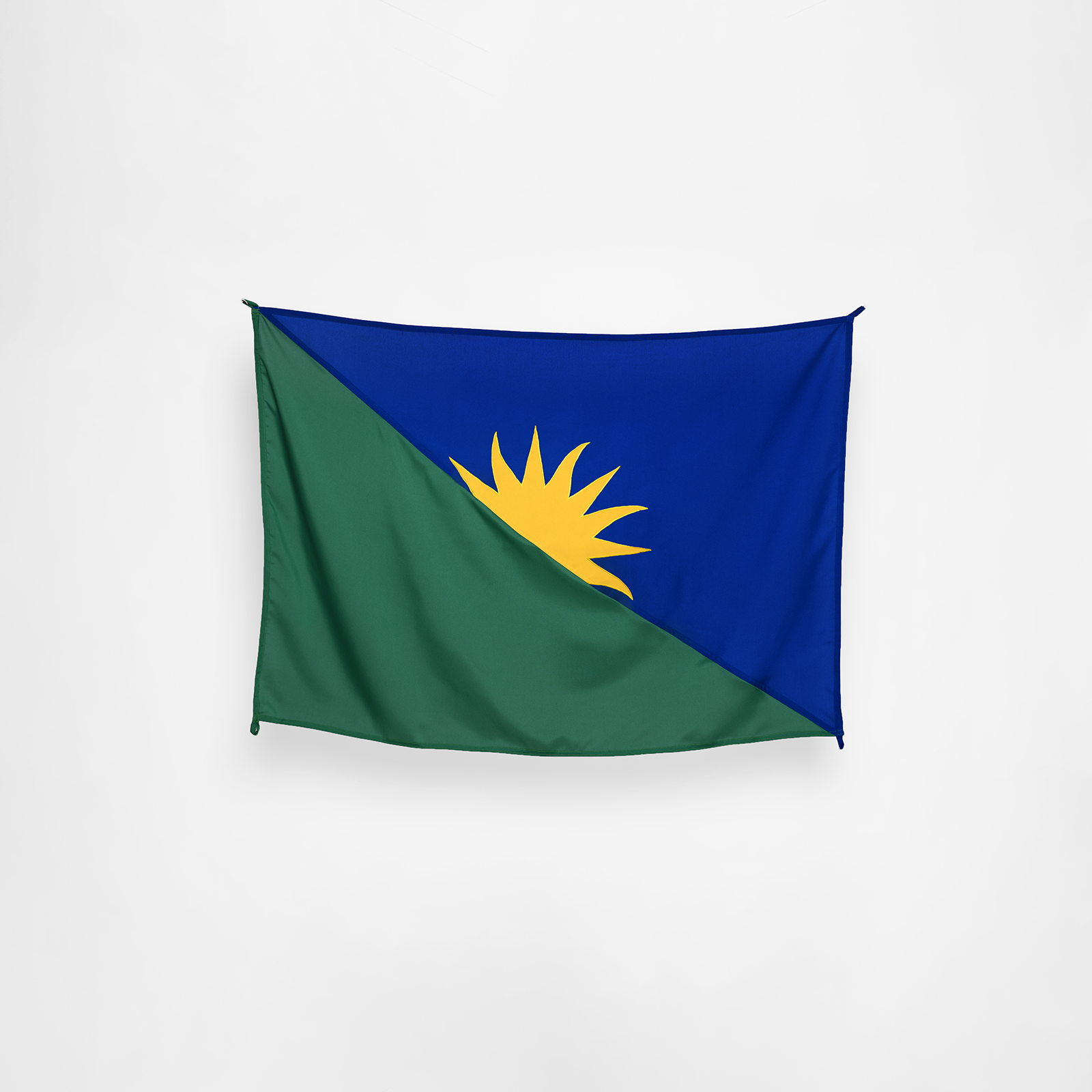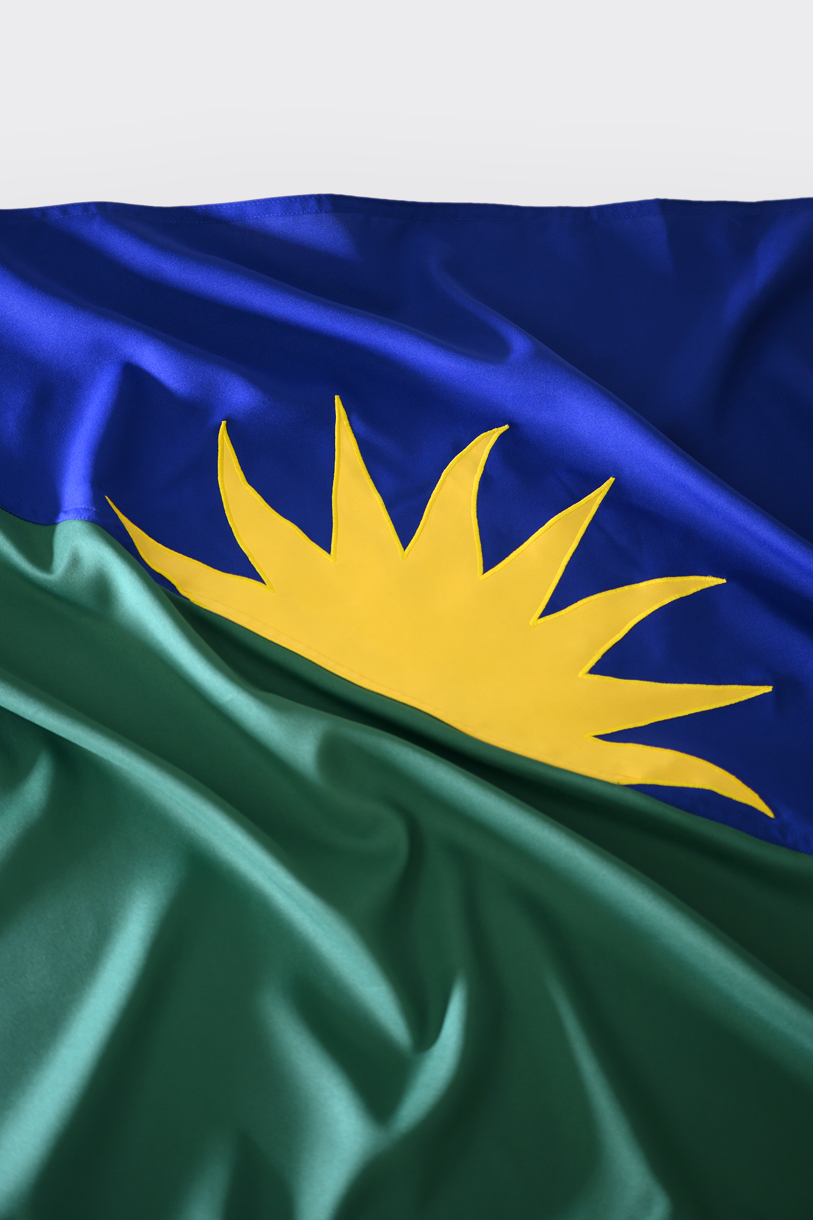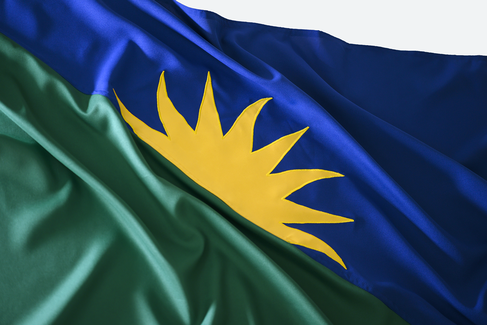 Por fim, depois de definir cores e formas, era necessário fazer um último teste: produzir uma bandeira no método tradicional, com tecido recortado e costurado.