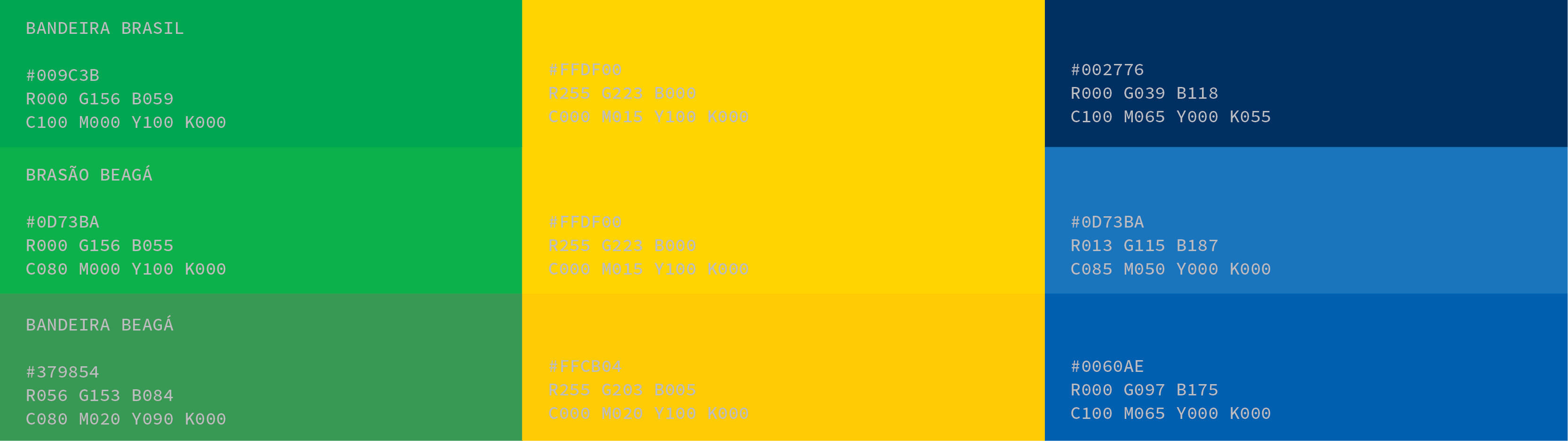 Para as cores, mais importante do que escolher um Pantone específico, o importante em um projeto de bandeira é escolher a ‘idéia’ das cores. Ficamos então com o ‘Verde-Serra’, ‘Azul-Céu’, e ‘Amarelo-Sol’.