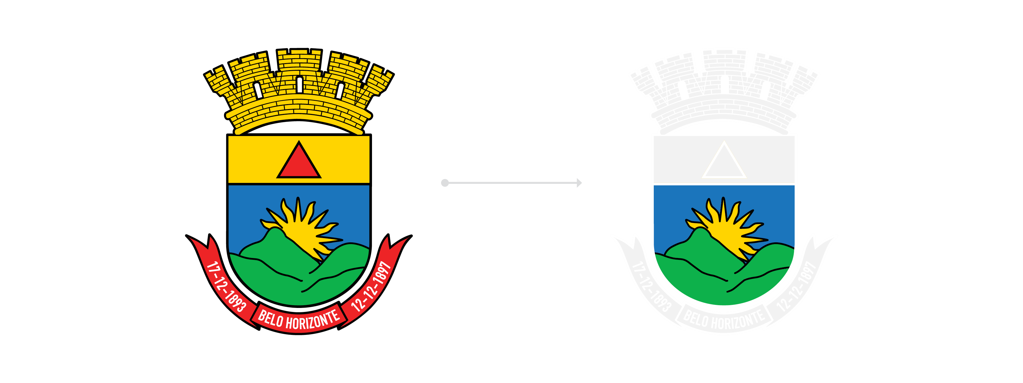 O próximo passo para chegar em ‘uma (nova) bandeira para Belo Horizonte’ foi então, justamente, uma tentativa de simplificação do desenho do nascer do sol na Serra do Curral, presente em todas as versões do brasão oficial da cidade.